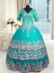 Half Sleeves Zipper Floor Length Beading and Lace and Appliques and Ruffled Layers Quinceanera Gown