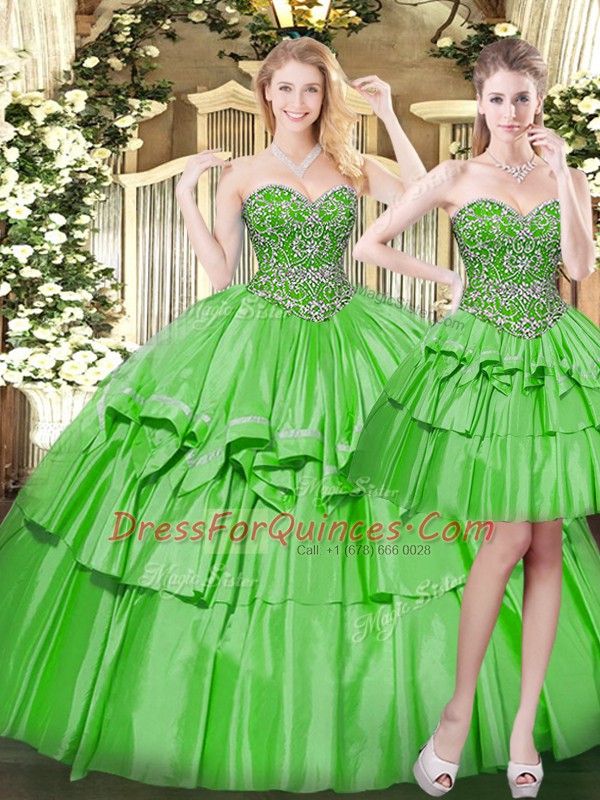 High End Floor Length Lace Up Vestidos de Quinceanera Green for Military Ball and Sweet 16 and Quinceanera with Beading and Ruffled Layers