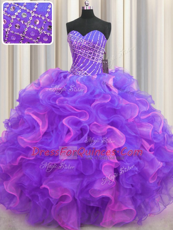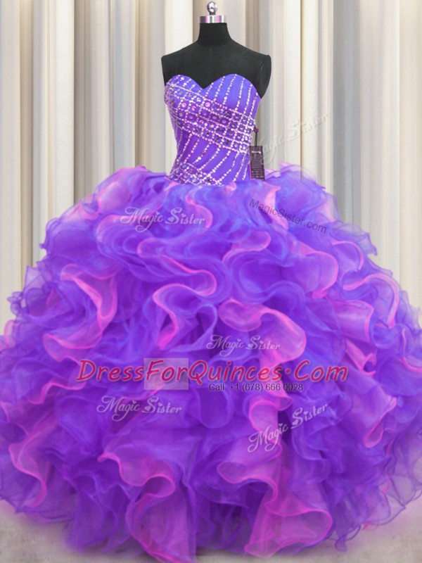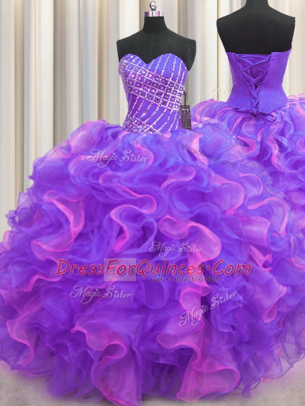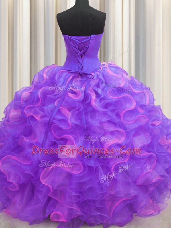 High Low Multi-color Ball Gown Prom Dress Sweetheart Sleeveless Lace Up