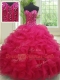 Hot Selling Fuchsia Sleeveless Floor Length Beading and Ruffles Lace Up Quinceanera Dresses