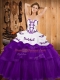 Inexpensive Purple 15 Quinceanera Dress Military Ball and Sweet 16 and Quinceanera with Embroidery and Ruffled Layers Strapless Sleeveless Sweep Train Lace Up