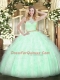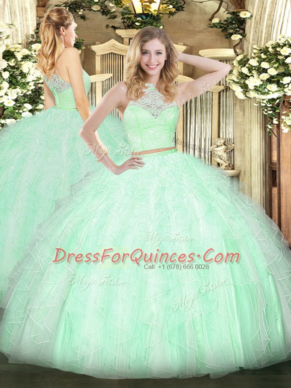 Lace and Ruffles Ball Gown Prom Dress Apple Green Zipper Sleeveless Floor Length
