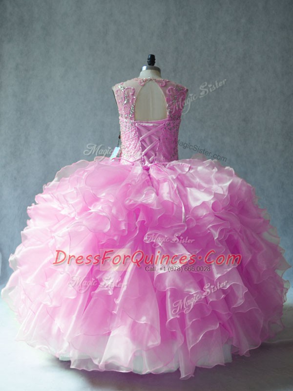 Lilac Organza Lace Up Sweet 16 Dress Sleeveless Floor Length Beading and Ruffles