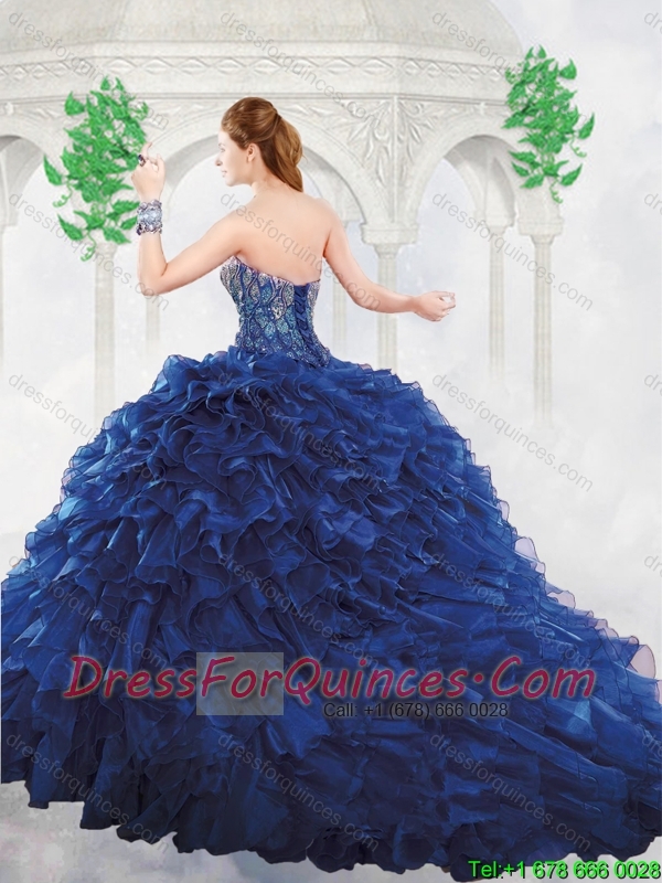 Luxurious Royal Blue Sweetheart Quinceanera Gowns with Brush Train