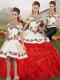 Modern White And Red Three Pieces Off The Shoulder Sleeveless Organza Floor Length Lace Up Embroidery and Ruffles Quinceanera Gowns