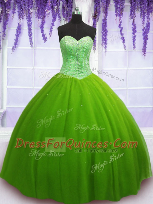 New Arrival Ball Gowns Tulle Sweetheart Sleeveless Beading Floor Length Lace Up 15 Quinceanera Dress