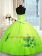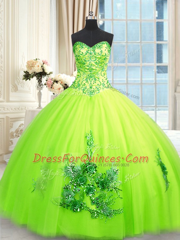 New Style Sleeveless Floor Length Beading and Appliques and Embroidery Lace Up Ball Gown Prom Dress with Yellow Green