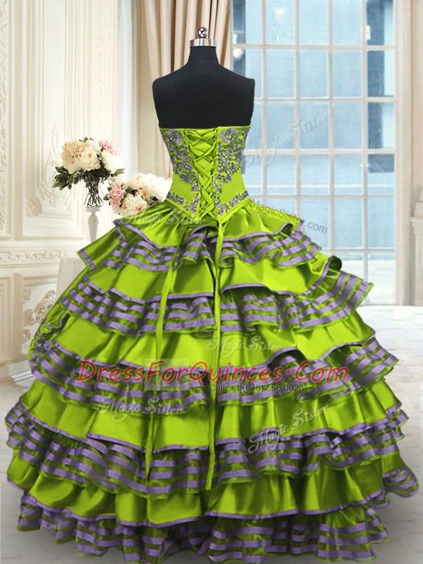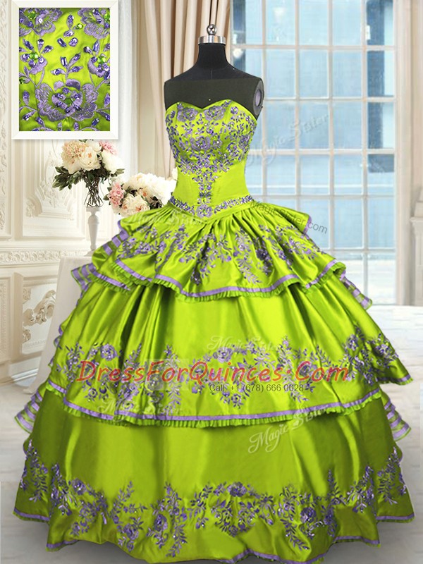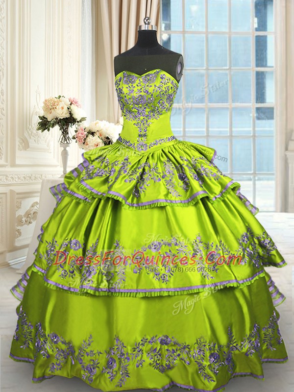 New Style Yellow Green Lace Up Quinceanera Gown Embroidery and Ruffled Layers Sleeveless Floor Length