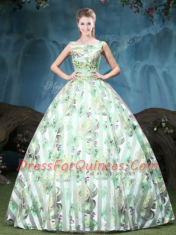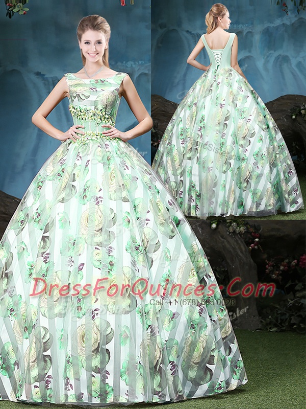 Nice Multi-color Lace Up Straps Appliques and Pattern 15 Quinceanera Dress Tulle Sleeveless