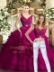 Noble Fuchsia V-neck Backless Beading and Ruffles Quinceanera Dress Sleeveless