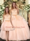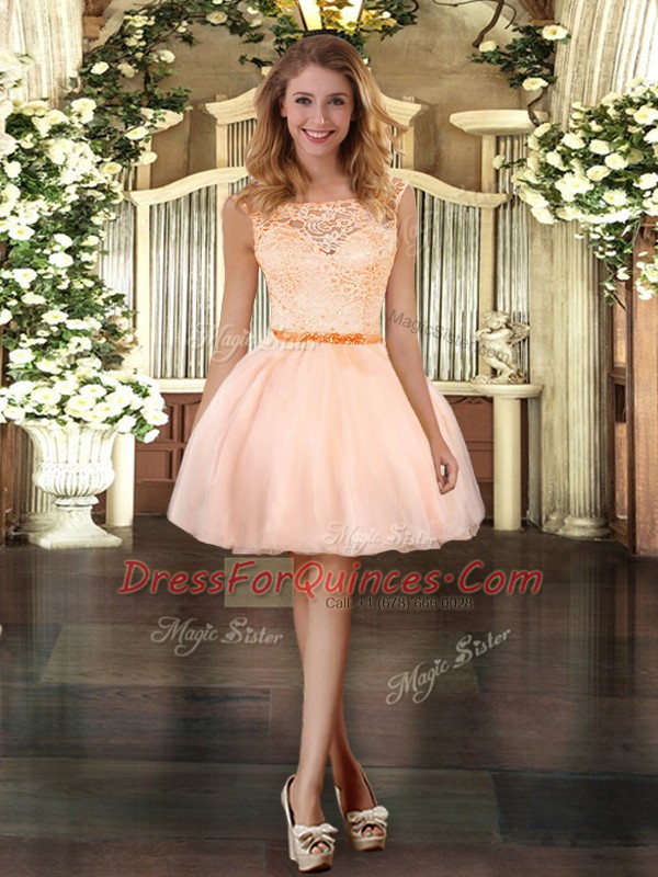 Noble Peach Scoop Zipper Lace Vestidos de Quinceanera Sleeveless