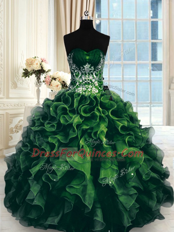 On Sale Sweetheart Sleeveless Organza 15 Quinceanera Dress Beading and Ruffles Lace Up
