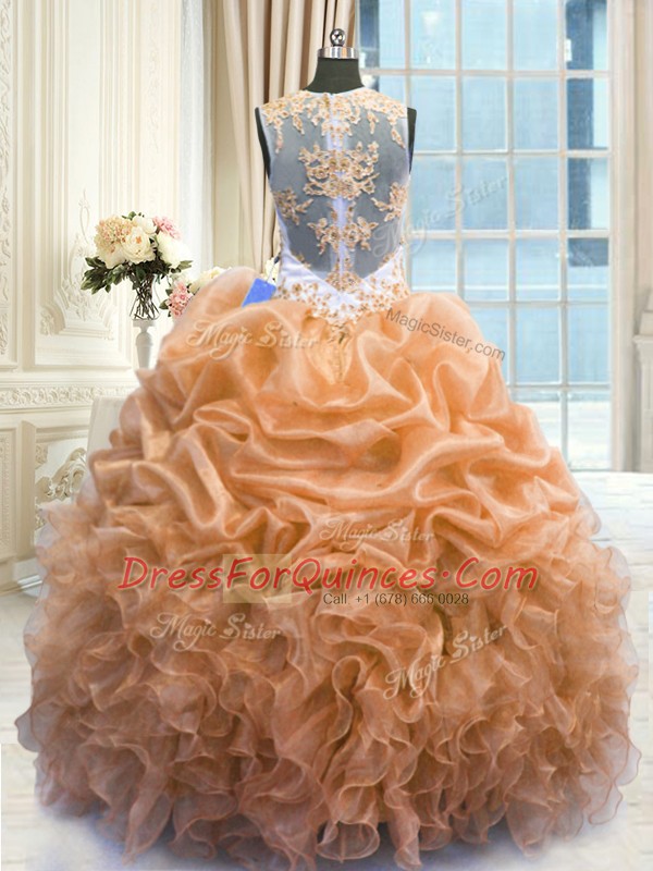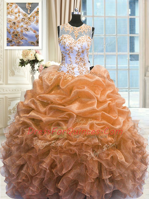 Orange Quinceanera Gown Military Ball and Sweet 16 and Quinceanera and For with Beading and Ruffles Scoop Sleeveless Zipper