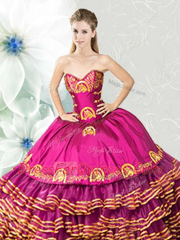 Organza and Taffeta Sleeveless Floor Length 15th Birthday Dress and Embroidery and Ruffled Layers