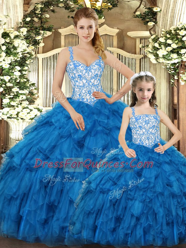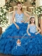 Organza Sleeveless Floor Length Vestidos de Quinceanera and Beading and Ruffles