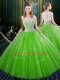 Perfect Tulle High-neck Sleeveless Zipper Lace Quince Ball Gowns in