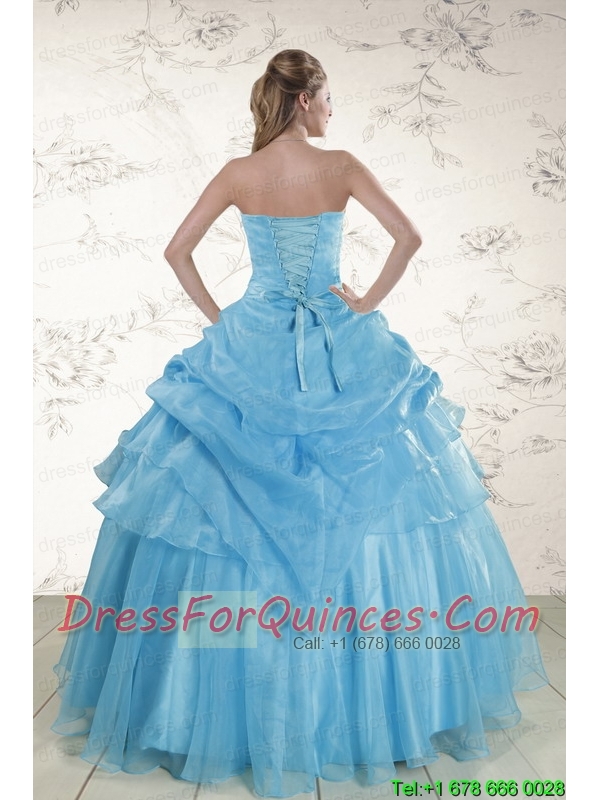 Pretty Aqua Blue 2015 Strapless Quinceanera Dresses with Beading