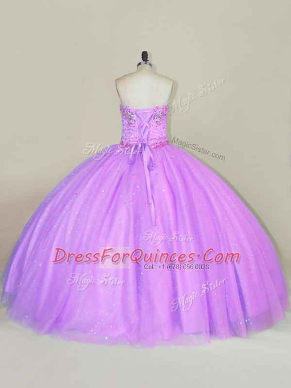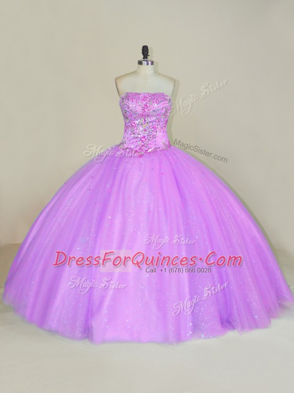 Pretty Strapless Sleeveless Tulle Quinceanera Gowns Sequins Lace Up