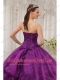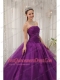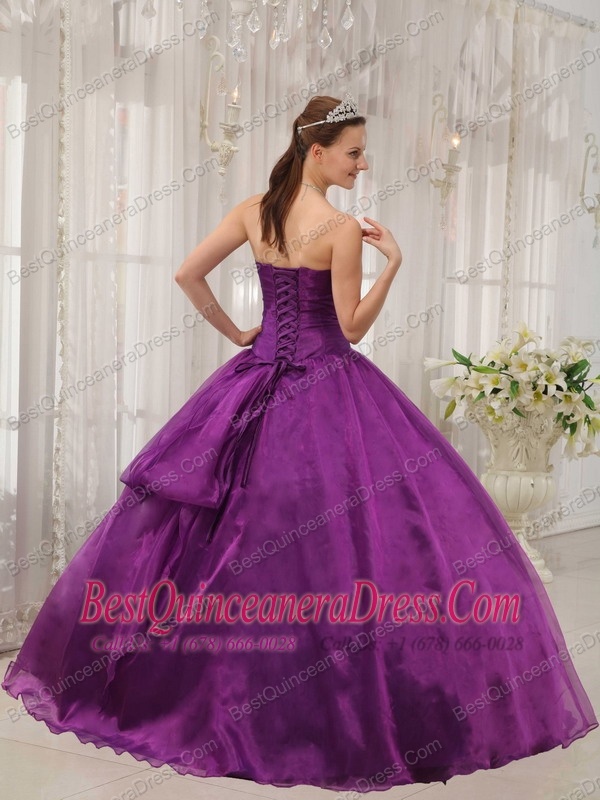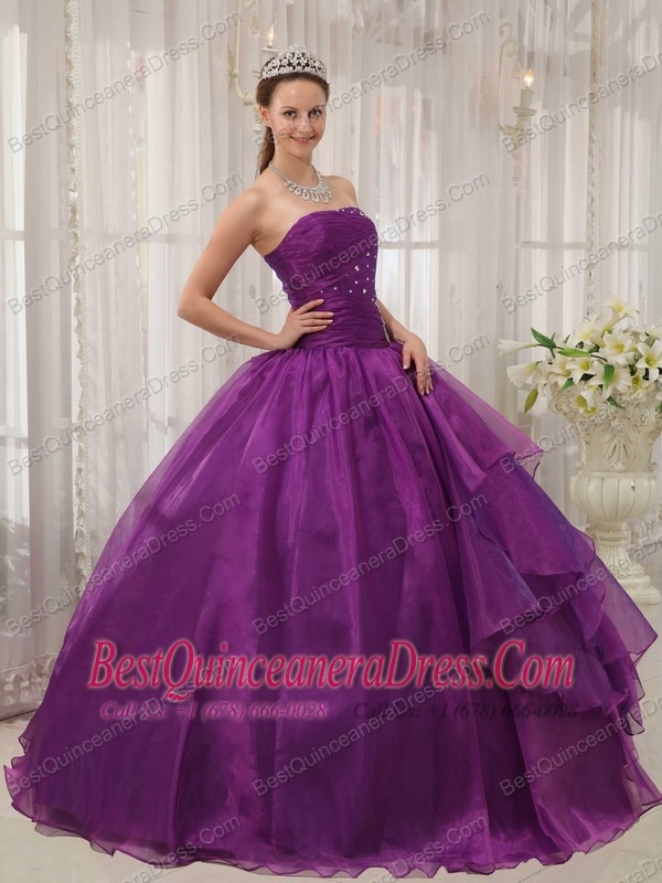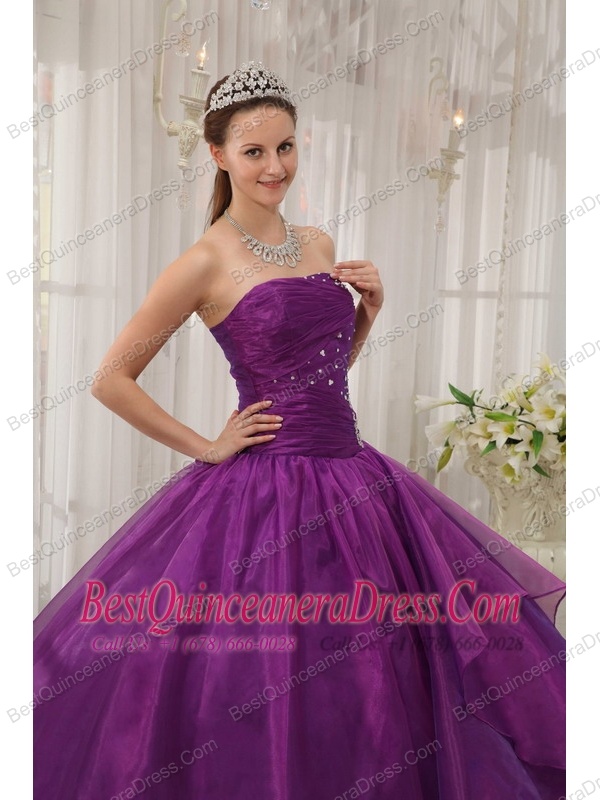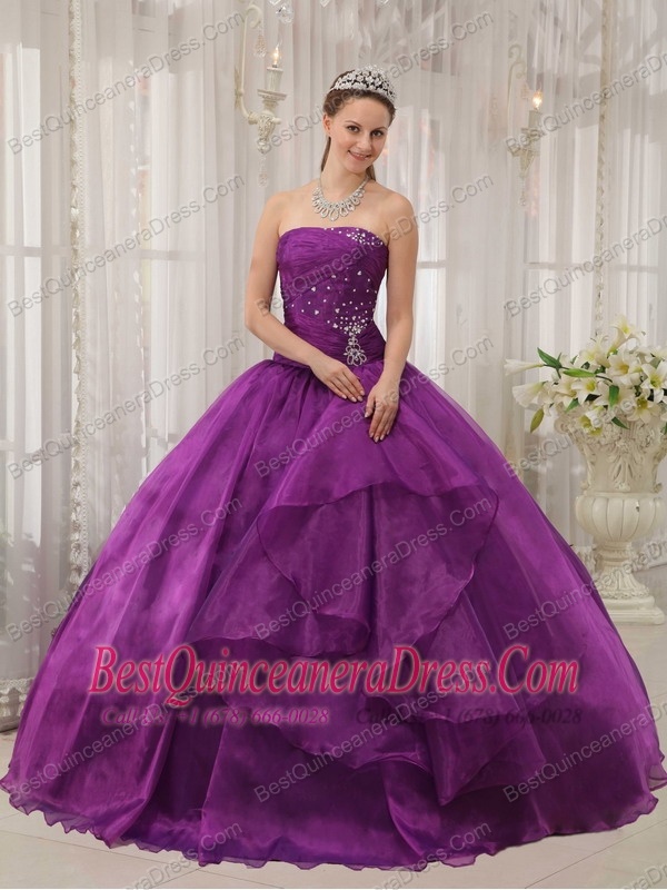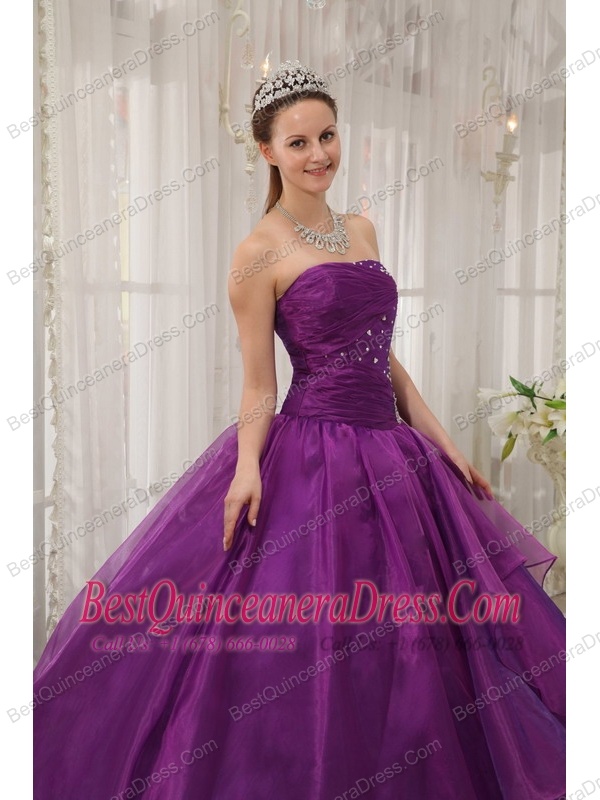 Purple Ball Gown Strapless Floor-length Organza Beading Quinceanera Dress