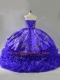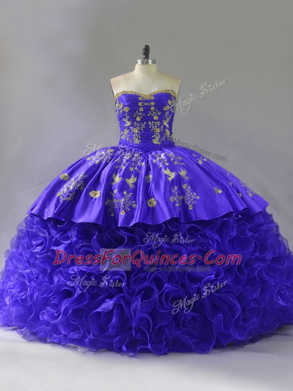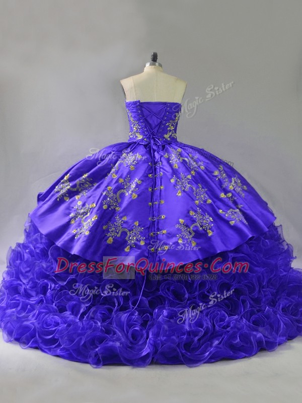Purple Sleeveless Brush Train Embroidery and Ruffles Floor Length 15 Quinceanera Dress