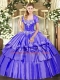 Purple Sleeveless Floor Length Beading and Ruffled Layers Lace Up Quinceanera Gown