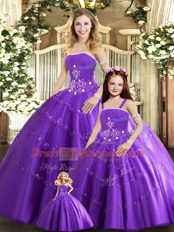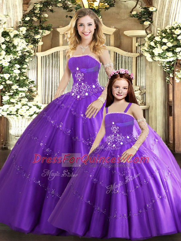 Purple Strapless Neckline Beading Quinceanera Dress Sleeveless Lace Up