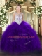 Purple Zipper Scoop Beading and Ruffles 15th Birthday Dress Tulle Sleeveless