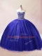 Royal Blue Ball Gowns Tulle Sweetheart Sleeveless Beading Floor Length Lace Up 15th Birthday Dress