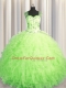 See Through Zipper Up Sleeveless Tulle Floor Length Zipper Sweet 16 Dresses in Green with Beading and Ruffles