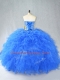 Sexy Blue Sweetheart Lace Up Beading and Ruffles Quinceanera Dress Sleeveless
