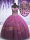 Simple Sleeveless Tulle Floor Length Lace Up Quinceanera Gown in Lilac with Beading