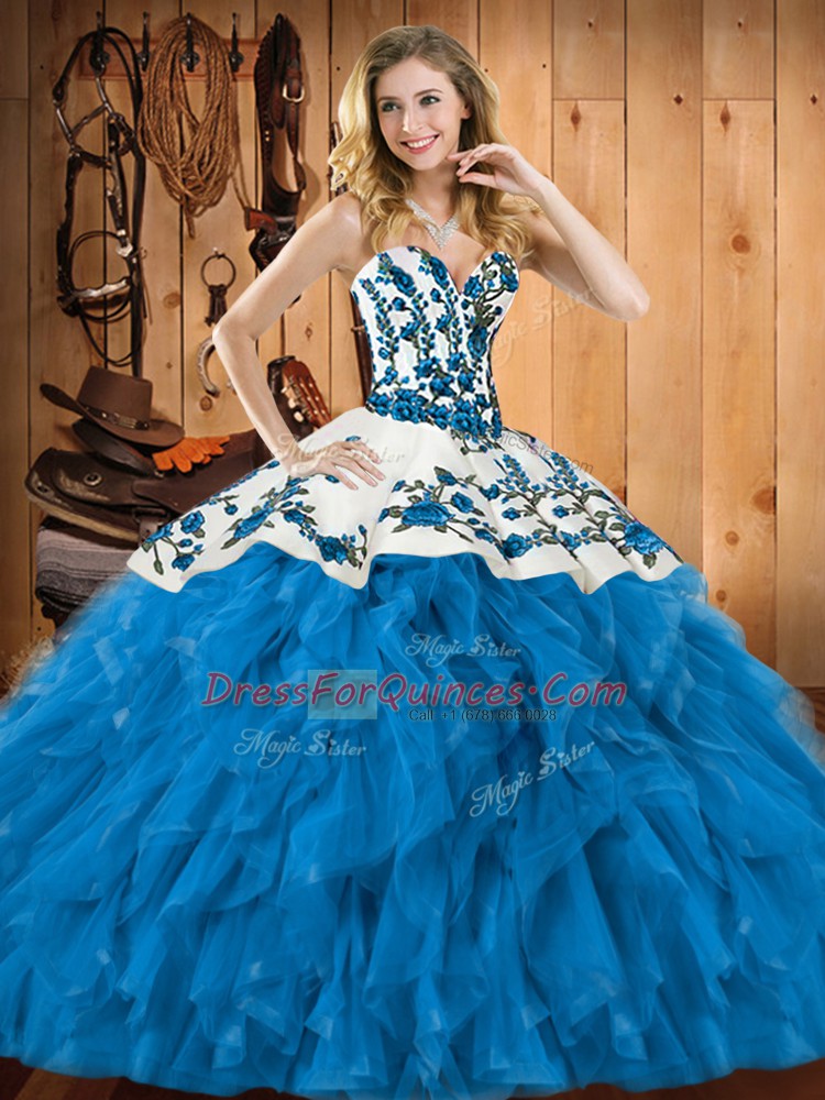 Sleeveless Embroidery and Ruffles Lace Up Quinceanera Gowns