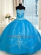Sleeveless Floor Length Embroidery Lace Up Sweet 16 Quinceanera Dress with Baby Blue