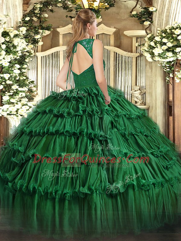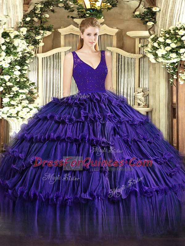 Sleeveless Zipper Floor Length Beading and Ruffled Layers 15 Quinceanera Dress