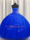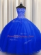 Smart Puffy Skirt Sweetheart Sleeveless 15th Birthday Dress Floor Length Beading Royal Blue Tulle