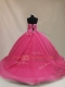 Smart Sleeveless Tulle Court Train Lace Up Sweet 16 Dress in Hot Pink with Beading