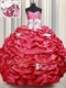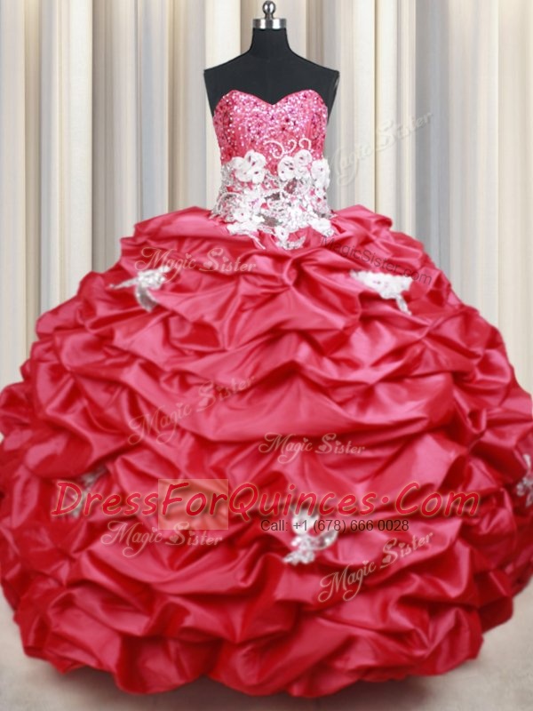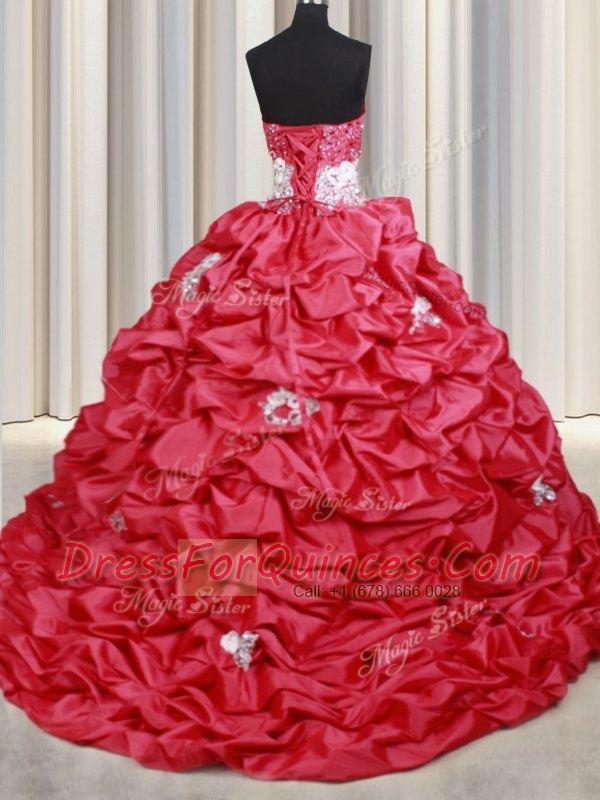 Sophisticated Coral Red Lace Up Sweetheart Beading and Appliques and Sequins and Pick Ups Quinceanera Dresses Taffeta Sleeveless Brush Train