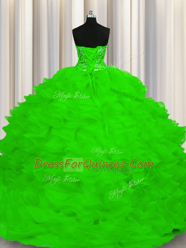Strapless Sleeveless Quinceanera Gown Sweep Train Beading and Ruffles Organza
