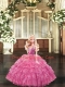 Sumptuous Rose Pink Sleeveless Tulle Lace Up Sweet 16 Dresses for Military Ball and Sweet 16 and Quinceanera