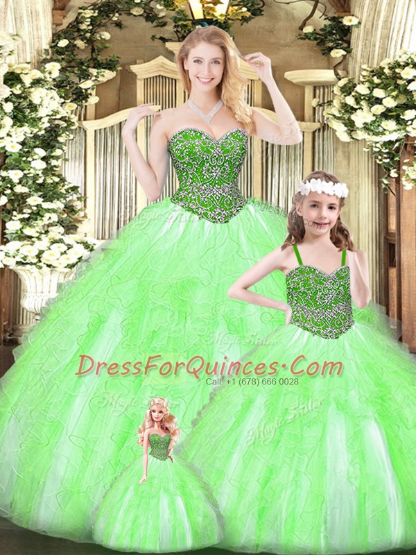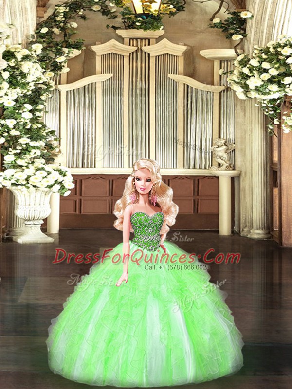 Superior Organza Sleeveless Floor Length Ball Gown Prom Dress and Beading and Ruffles