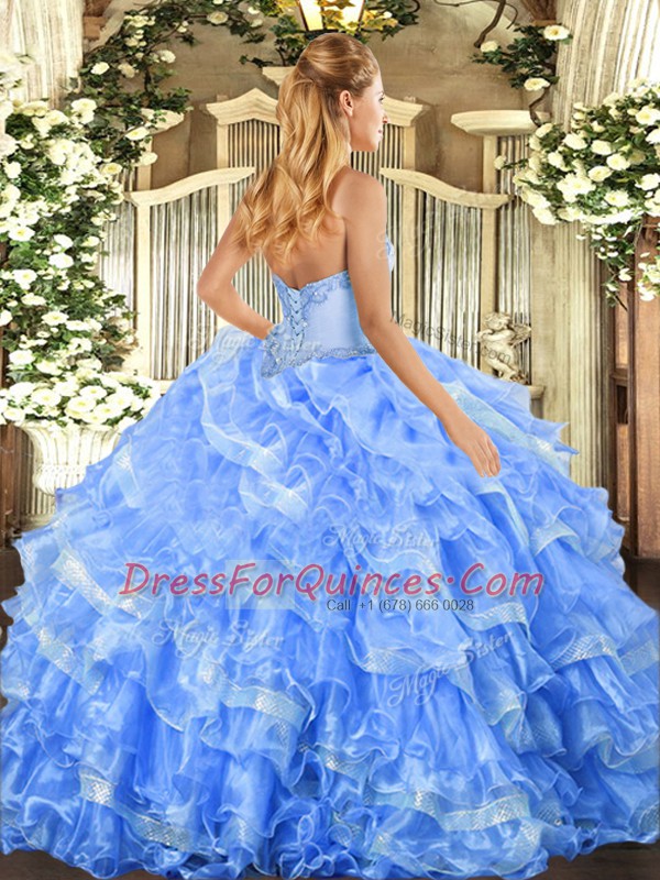 Superior Sleeveless Lace Up Floor Length Beading and Ruffled Layers 15th Birthday Dress