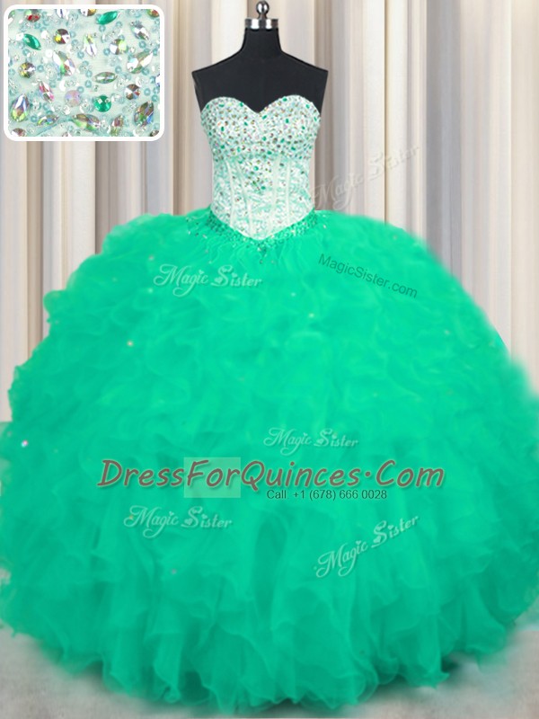 Sweet Turquoise Sweet 16 Quinceanera Dress Military Ball and Sweet 16 and Quinceanera and For with Beading and Ruffles Sweetheart Sleeveless Lace Up