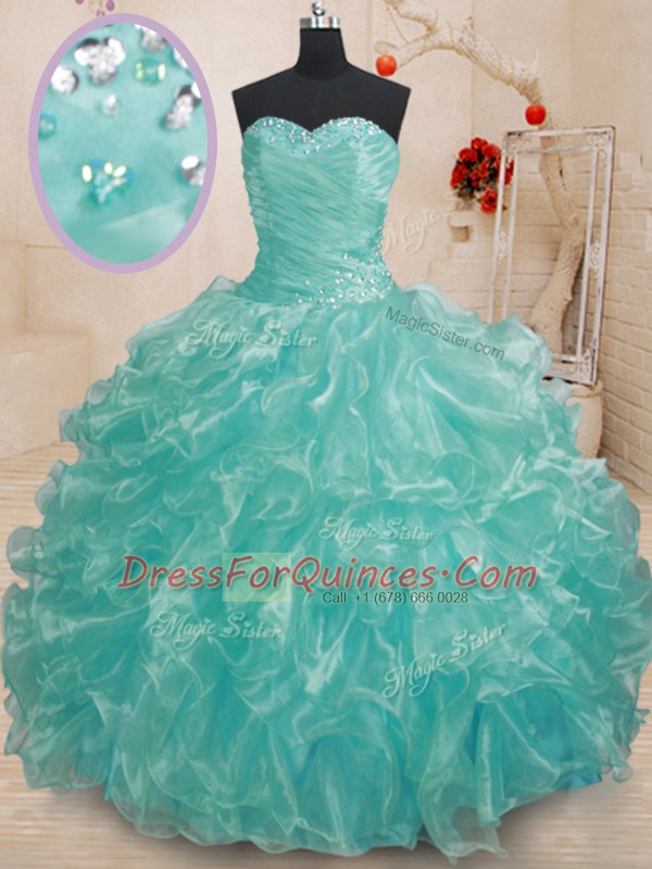 Teal Sweetheart Neckline Beading and Ruffles Quinceanera Dresses Sleeveless Lace Up