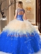 Tulle Scoop Sleeveless Lace Up Beading Quinceanera Gown in Multi-color