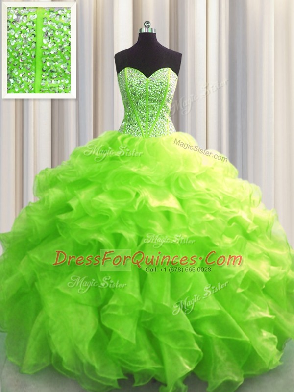 Visible Boning Organza Sweetheart Sleeveless Lace Up Beading and Ruffles Ball Gown Prom Dress in