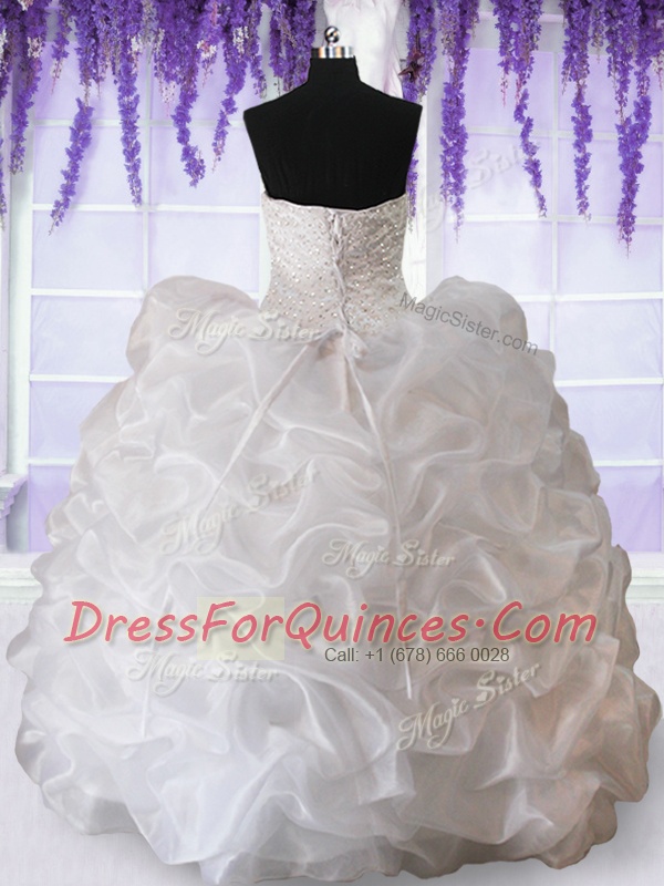 White 15 Quinceanera Dress Military Ball and Sweet 16 and Quinceanera and For with Beading and Appliques and Pick Ups Sweetheart Sleeveless Lace Up