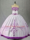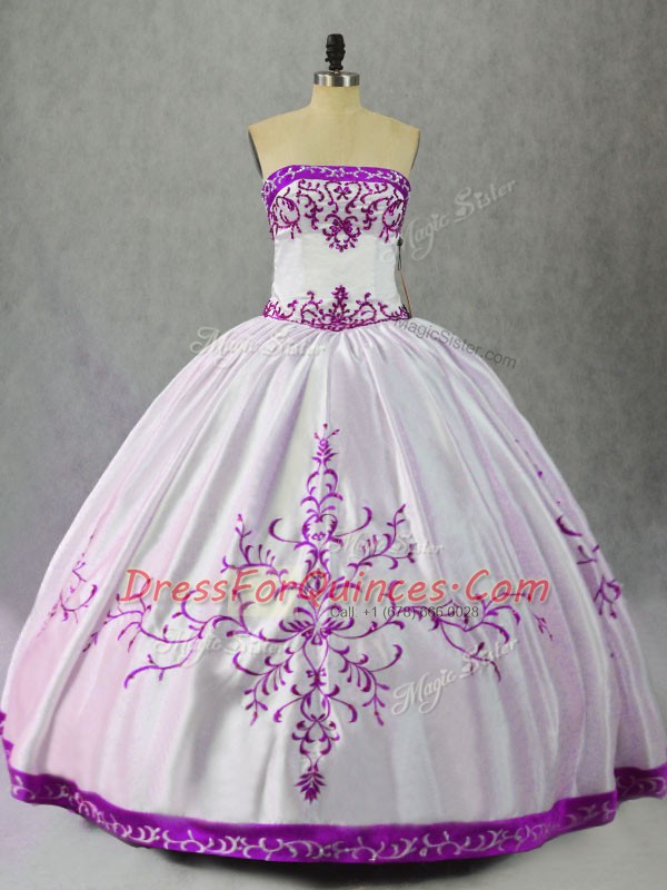 White And Purple Satin Lace Up Strapless Sleeveless Floor Length Quinceanera Dress Embroidery