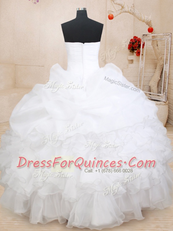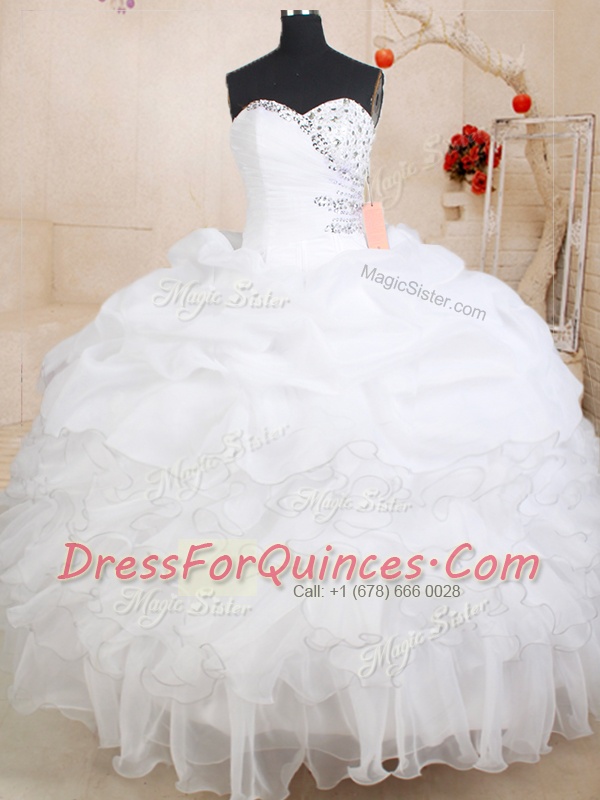 White Sleeveless Floor Length Beading and Ruffles and Pick Ups Zipper Sweet 16 Dress