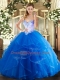 Blue Sleeveless Tulle Lace Up Sweet 16 Dresses for Military Ball and Sweet 16 and Quinceanera