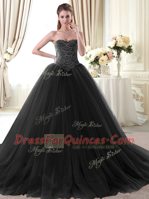 Charming Ball Gowns Sweet 16 Dress Black Sweetheart Tulle Sleeveless Floor Length Lace Up